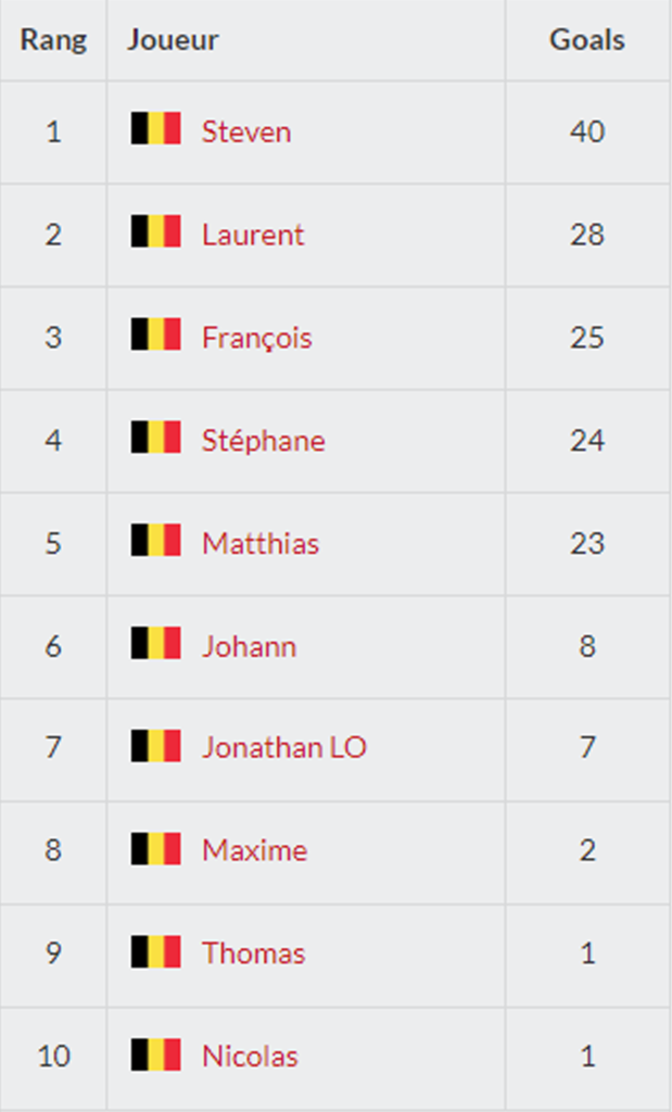 | 2021-12-17 21:00:0217 décembre 2021 | OL BINCHE vs FLG ARMADA (HAP4G085) | 21:00:0221h00 | 6 - 12 | 2021-2022 (P4G) | |